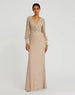 Adorned with pearl embellishments, this gown exudes elegance and luxury. The long bishop sleeves and v-neckline add a touch of sophistication, making it the perfect choice for any formal occasion.
