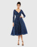 Featuring sheer long sleeves and delicate applique waist detailing, this dress exudes sophistication and grace. With a flattering tea length design, it's the perfect choice for any special occasion.
