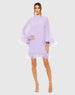 Purple High Neck Long Sleeve Mini Dress with Feather Trim