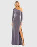 Gray Side Twist Drop Shoulder Beaded Cuff Gown