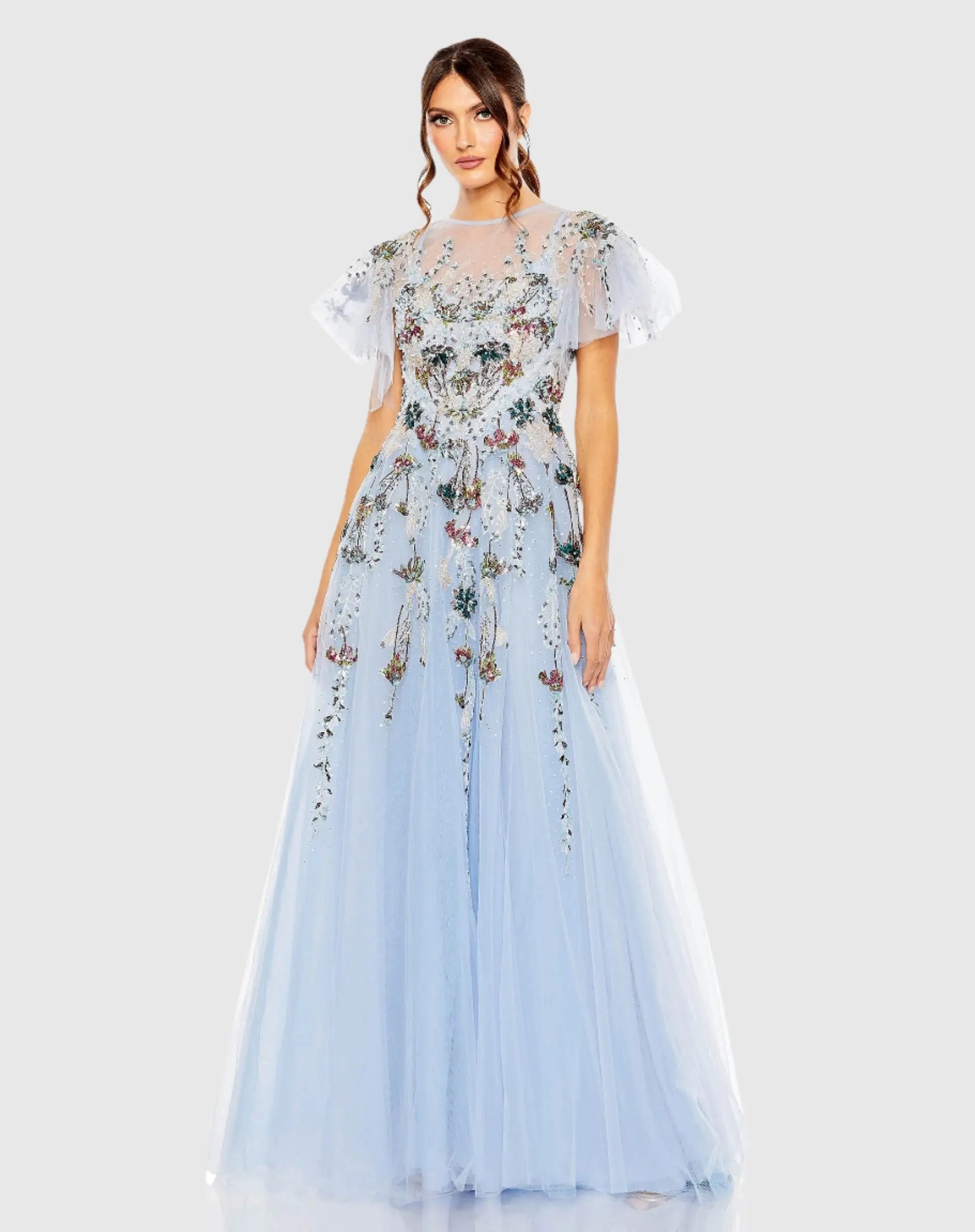 Embellished Multi Color Flutter Sleeve A-Line Dress