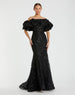 This stunning mermaid gown features an off-the-shoulder neckline and intricate embellished fabric, perfect for making a refined statement at any formal event.