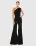 A fashion-forward alternative to a party dress, this one-and-done jumpsuit is the perfect way to mix up your evening attire. The jumpsuit is designed with a sequin-covered one-shoulder bodice, retro bell-bottom pants, and a slender set-on waistband that pulls the piece together. A sophisticated way to sparkle all night long.