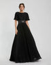 This elegant gown features flutter sleeves, a flattering ball gown silhouette, and shimmering lurex fabric. Perfect for any special occasion, the short flutter sleeves add a touch of romance while the shimmering fabric catches the light for a stunning look.