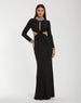 Black Embellished Jersey Long Sleeve Cut Out Evening Gown