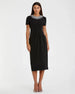 Black Short Sleeve Rhinestone Neckline Sheath Dress