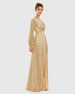 Gold Multi-Colored Sequin Long Sleeve Gown