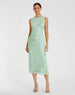 Green Striped Floral Embellished Sleeveless Midi Dress
