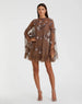 Turn heads in this dazzling trapeze mini dress. Designed with a sheer mesh overlay, this beautiful dress features intricate sequin and beaded embellishments and 3d satin fan-shaped pleats. Perfect for cocktail parties and weddings.