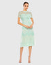 Green Embroidered Ruffled Cap Sleeve Midi Dress