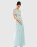 Blue Embellished High Neck Butterfly Sleeve Gown