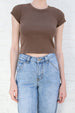 Fitted, cropped short sleeve tee with a crewneck collar.