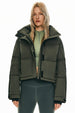 Stylish Design: The cropped puffer jacket sports a chic color-blocked design with woven accents on the collar and sleeves, making it a fashionable choice for winter outings.