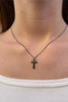 Thin chain necklace with a gothic cross charm and adjustable lobster clasp closure.