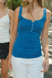 Soft ribbed cotton tank with a scoop neck and 6 buttons.