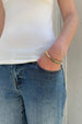 Rigid bracelet with a gold metallic finish and an interlaced double-ring design that slides onto the wrist.