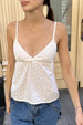Flowy tank top with v-neck, floral details, adjustable straps, and tie in the back