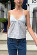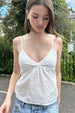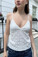 Flowy tank top with v-neck, pointelle details, adjustable straps and tie in the back