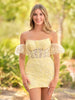 Unveil your inner queen with the stunning 'Ethel', A Sheath Lace Strapless Homecoming Dress. Woven from the most exquisite lace fabric, this dress exudes an aura of timeless sophistication. The strapless neckline is both classic and daring, giving you a chance to flaunt your shoulders. Unique detachable balloon sleeves provide versatility to your look – wear them for a dramatic entrance and remove them as the night heats up. Every inch of the dress, from the meticulously embedded lace appliques & beadings to the corset bodice, screams luxury.