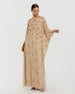 This stunning Floral Embellished Kaftan Gown features a flattering boat neckline and elegant kaftan silhouette. The intricate 3D embellishments add a touch of sophistication to this versatile piece. Perfect for any occasion, this dress will make you feel confident and stylish.