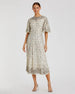 Enhance your elegance with the Flounce Sleeve Midi Dress. The illusion high neckline adds a touch of allure, while the beaded waist detail accentuates your figure beautifully. Perfect for any special occasion, this midi dress offers a harmonious blend of style and grace.