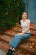 Cotton blend, short sleeves, boat neck, stretchy, fitted, off-the-shoulder, black dot print.