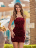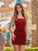 Turn heads in this dazzling sheath-style mini dress crafted from shimmering sequin fabric. Available in bold silver or classic black, it features a sleek spaghetti straps neckline and sleeveless cut for a chic, modern look. The short length adds a flirty vibe, while the lace-up back ensures both comfort and a customizable fit. With sequins as the standout embellishment, this dress is perfect for homecoming, hoco parties, or any night you want to shine.