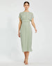 Green Beaded Cap Sleeve Empire Waist Sheath Midi Dress