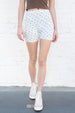 Stretchy cotton blend biker style shorts in ivory with blue floral detailing and an elastic waistband.