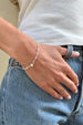 Chain link bracelet with beads, heart charms and an adjustable lobster clasp closure.