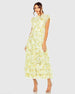 Yellow High Neck Ruffle Cap Sleeve Floral Dress