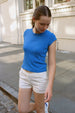 Fitted, cropped short sleeve tee with a crewneck collar.