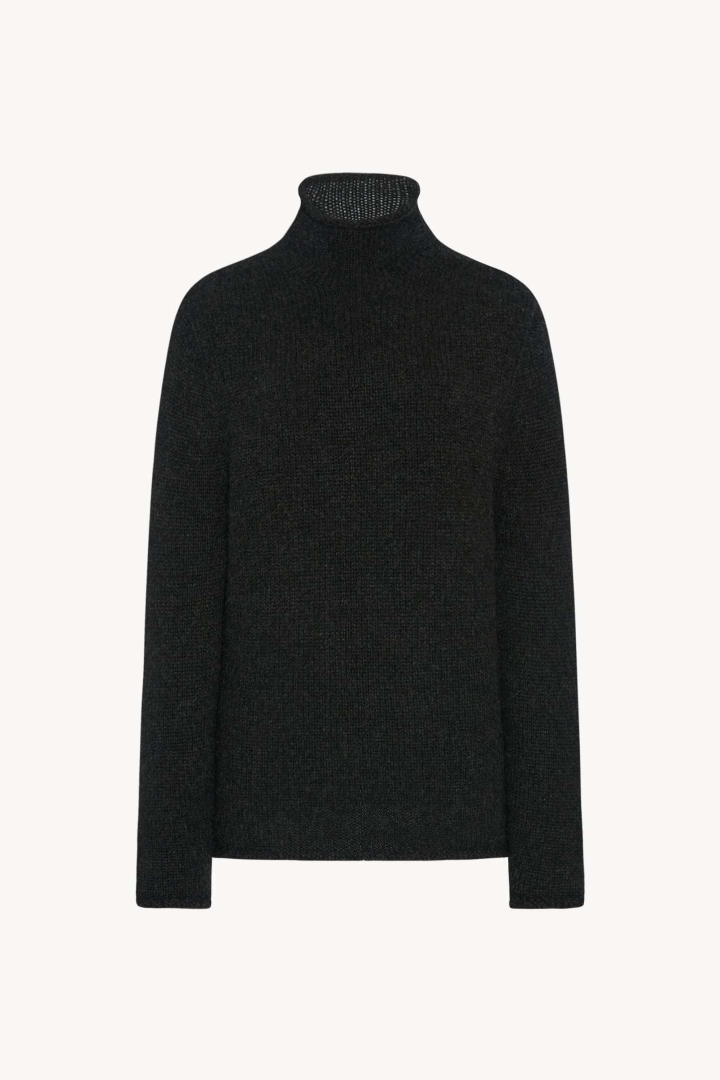 Slightly fitted turtleneck sweater in soft midweight cashmere with rolled collar and seamless construction.