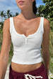 Soft ribbed cotton tank top with a scoop neck, 3 buttons and a raw hem. Fabrics: 100% cotton Measurements: 15' (38 cm) length, 12' (31 cm) bust Made in: Italy