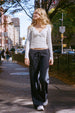 Soft cotton blend tie yoga pants with a big flare pant leg.