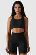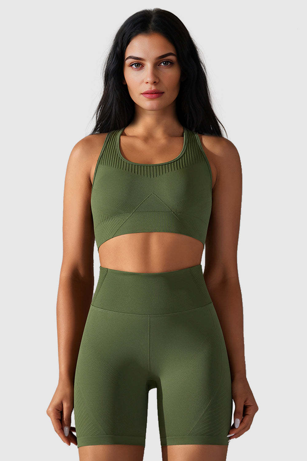 This seamless sports bra features a breathable and moisture-wicking fabric with a twill texture, making it perfect for workouts and everyday wear.