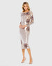 Sequined Asymmetrical Floral Long Sleeve Midi Dress