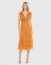 Sequined Wrap Over Cap Sleeve Ruffle Hem Dress