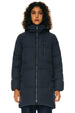 Our mid-length down jacket, is thoughtfully crafted with a customizable drawstring hood, internal waist drawstring, 2 spacious side pockets, and an additional stylish zipper pocket.