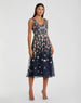 V-Neck Sleeveless Midi Floral Beaded A-line Dress